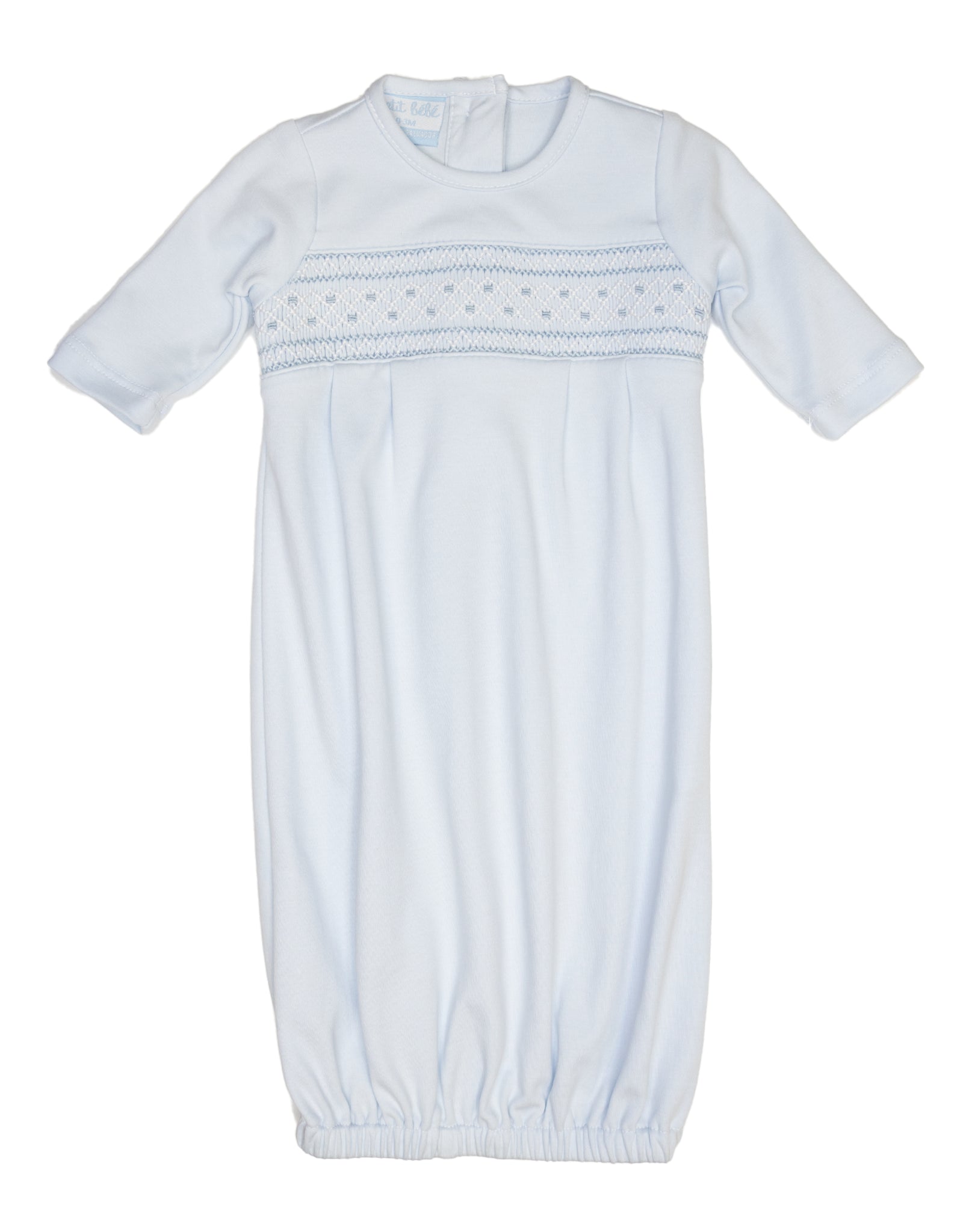 MARCOS BLUE KNIT SMOCKED GOWN